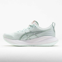 Light, bouncy and energetic, the ASICS GEL-Cumulus 27 is a daily training titan! This neutral running shoe is a versatile option for various workouts. Stay smooth under the full-length FF BLAST™ PLUS midsole while PureGEL™ technology adds soft landings. The FLUIDRIDE™ outsole features a rubberized EVA blend for smooth transitions. If you need a reliable shoe for daily miles, choose the ASICS GEL-Cumulus 27! What's New? - Spacious toe box offers a more accommodating fit. - Premium padded tongue and knit pull tab improve step-in comfort. Who's it for? - Neutral runners who want a soft, flexible ride during daily training runs. - Runners seeking a reliable training partner to support them through long distances. - Beginners looking for a comfortable, entry-level shoe to start their running journey. Shoe Technology Upper: Engineered mesh upper enhances breathability and comfort. Reflective details improve visibility. Knit heel pull tab offers easy entry. OrthoLite™ X-30 sockliner provides a soft step-in feel. The sockliner uses a solution dyeing process that reduces water usage and carbon emissions. At least 75% of the upper material includes recycled content. Midsole: Full-length FF BLAST™ PLUS foam absorbs impact to keep you comfortable. PureGEL™ technology offers soft landings. Outsole: FLUIDRIDE™ outsole helps create smoother transitions. PRODUCT SPECIFICATIONS - Support: neutral - Color: Pure Aqua/White - Forefoot Height: 29.5mm - Heel Height: 37.5mm - Offset: 8mm - Weight: 8.2 Ounces (Size 8.5) - Item #: 042296 - Style #: 1012B772.300 US sales only.