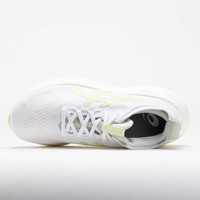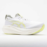 Find your comfort zone in the ASICS GEL-Nimbus 27! This neutral running shoe blends plush and eco-friendly materials for a smooth ride. Stay comfortable while you cruise through daily training in the jacquard mesh upper. Enjoy smooth landings on the PureGEL™ midsole, while bio-based FF BLAST™ PLUS ECO foam adds softness. Soft, light and eco-friendly, the ASICS GEL-Nimbus 27 keeps your feet in the clouds! What's New? - Extra 2mm of FF BLAST PLUS ECO™ provides softer landings. - Engineered jacquard mesh upper wraps the foot with a soft feel to improve breathability. Who's it for? - Neutral runners who want a comfortable shoe for high weekly mileage, long distances and recovery runs. - Active walkers who need a highly-cushioned shoe to add comfort to their daily strolls. Shoe Technology Upper: Engineered jacquard mesh upper wraps the foot with a soft feel. Made with at least 75% recycled materials to reduce waste and carbon emissions. OrthoLite™ X-55 sockliner improves step-in comfort. The sockliner includes a solution dyeing process that reduces water usage compared to conventional methods. Reflective details improve visibility in low-light conditions. Midsole: FF BLAST™ PLUS ECO cushioning made with approximately 24% bio-based content for soft landings and responsive lift-offs. PureGEL™ technology provides lightweight cushioning. Outsole: HYBRID ASICSGRIP™ outsole delivers a soft feel and excellent traction in any condition. PRODUCT SPECIFICATIONS - Support: neutral - Color: White/Huddle Yellow - Forefoot Height: 35.5mm - Heel Height: 43.5mm - Offset: 8mm - Weight: 10.9 Ounces - Item #: 042284 - Style #: 1011B958.101 US sales only.
