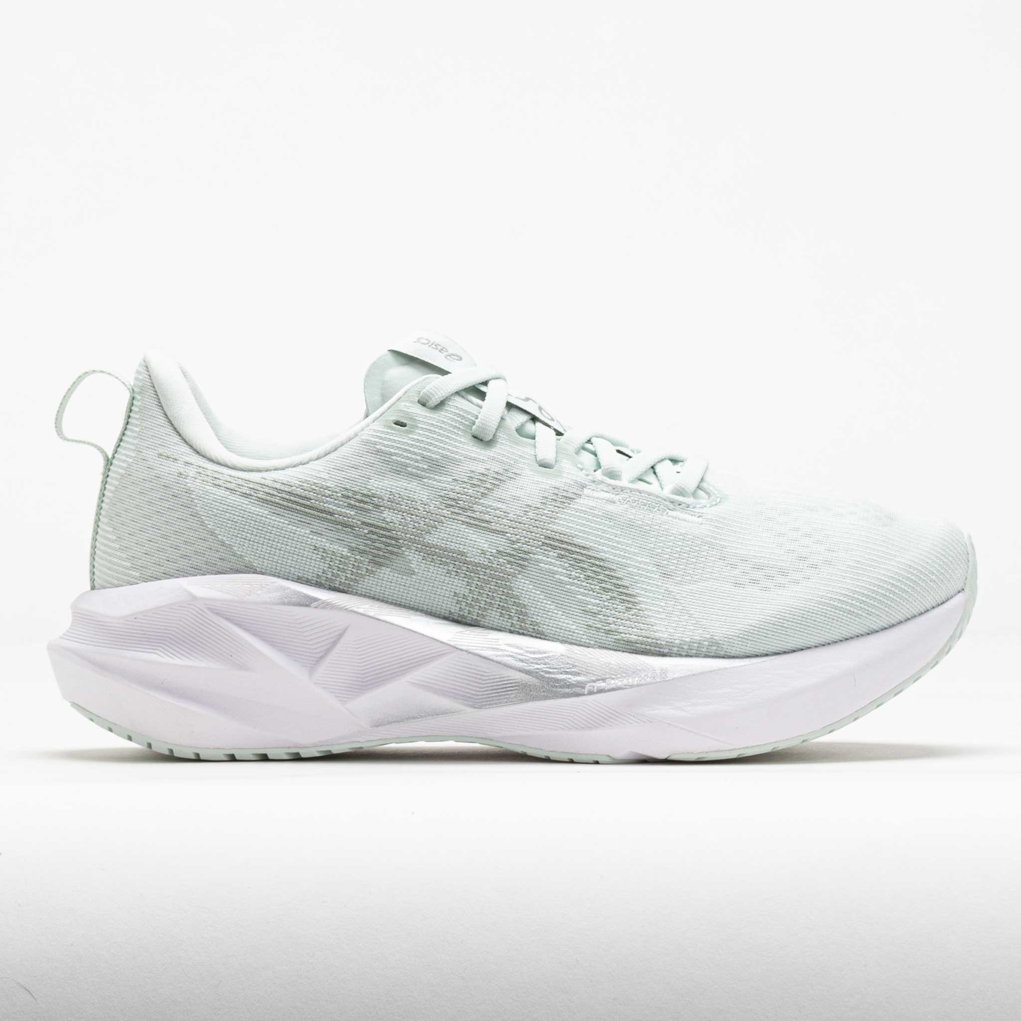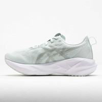 Take a run on the smooth side in the ASICS Novablast 5! Made with recycled materials, this neutral running shoe leaves a lighter footprint with every step. Stay secure while you cruise in the breathable jacquard mesh upper. The FF BLAST™ midsole delivers a dynamic bounce to keep you moving through the miles. Light, energetic and eco-friendly, the ASICS Novablast 5 provides comfort for long distances! What's New? - FF BLAST™ MAX cushioning offers a dynamic bounce and responsive energy return. - Technical mesh upper balances lightweight comfort and enhanced breathability. Who's it for? - Neutral runners looking for a daily training shoe with energetic cushioning and a responsive ride. - ASICS runners who want to experience the lively FLYTEFOAM BLAST™ MAX midsole. - Distance runners who need a shoe with lasting comfort for high weekly mileage. Shoe Technology Upper: Breathable engineered jacquard mesh upper keeps you comfortable. Tongue wing construction adds stretch to improve the fit while reducing tongue movement. Reflective details improve visibility in low-light situations. At least 75% of the shoe's upper is made with recycled materials. The sockliner features a dyeing process that reduces water usage and carbon emissions. Midsole: FF BLAST™ MAX cushioning provides a light and energetic ride. Outsole: AHAR® LO outsole rubber offers reliable traction on various surfaces. Trampoline-inspired design returns energy with every step. PRODUCT SPECIFICATIONS - Support: neutral - Color: Pure Aqua/Seal Grey - Forefoot Height: 32.5mm - Heel Height: 40.5mm - Offset: 8mm - Weight: 7.9 Ounces - Item #: 042355 - Style #: 1012B765.300 US sales only.