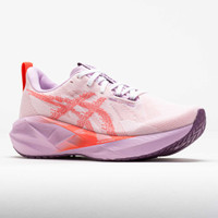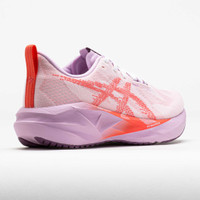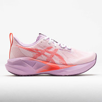 Feel comfort and find energy in the ASICS Novablast 5! Made with recycled materials, this neutral running shoe leaves a lighter footprint during your runs. Stay secure while you cruise in the breathable jacquard mesh upper. Every stride on the FF BLAST™ midsole delivers a dynamic bounce to keep you moving. Light, energetic and eco-friendly, the ASICS Novablast 5 provides smooth comfort over long distances! What's New? - FF BLAST™ MAX cushioning offers a dynamic bounce and responsive energy return. - Technical mesh upper balances lightweight comfort and enhanced breathability. Who's it for? - Neutral runners looking for a daily training shoe with energetic cushioning and a responsive ride. - ASICS runners who want to experience the lively FLYTEFOAM BLAST™ MAX midsole. - Long distance runners who need a shoe with long-lasting comfort for high weekly mileage. Shoe Technology Upper: Breathable engineered jacquard mesh upper keeps you comfortable. Tongue wing construction adds stretch to improve the fit while reducing tongue movement. Reflective details improve visibility in low-light situations. At least 75% of the shoe's upper is made with recycled materials. The sockliner features a dyeing process that reduces water usage and carbon emissions compared to conventional methods. Midsole: FF BLAST™ MAX cushioning provides a light and energetic ride. Outsole: AHAR® LO outsole rubber offers reliable traction on various surfaces. Trampoline-inspired design provides a more responsive bounce back. PRODUCT SPECIFICATIONS - Support: neutral - Color: White/Coral Reef - Forefoot Height: 32.5mm - Heel Height: 40.5mm - Offset: 8mm - Weight: 7.9 Ounces - Item #: 042354 - Style #: 1012B765.101 US sales only.
