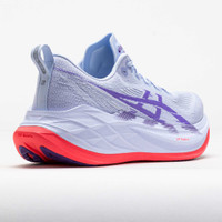 Supercharge your speed in the ASICS Superblast 2 Unisex! This fan-favorite super trainer stays true to the original while adding minor improvements. Enjoy plush cushioning from the energetic FF TURBO™ PLUS top layer and soft FF BLAST™ PLUS ECO foam below. An asymmetric mesh upper design features different colors on the medial and lateral angles for visual appeal.Speedy and stylish, the ASICS Superblast 2 helps you take flight during any run! What's new? - FF TURBO™ PLUS cushioning offers a softer, more energetic ride. - ASICSGRIP™ outsole provides a softer feel for improved traction during your miles. Who's it for? - Neutral runners looking for a light and bouncy shoe to wear during long runs, tempo training and more. - ASICS fans of the METASPEED and BLAST series who want to try the newest addition to the lineup. Shoe Technology Upper: Soft and stretchy woven upper provides more flexibility and comfort. Engineered mesh material improves airflow to keep your feet cool and dry. Gusseted tongue wing fit system secures the midfoot and reduces tongue sliding. Reflective details improve visibility in low-light environments. The sockliner features a dyeing process that reduces water usage by approximately 33% and carbon emission by 45% compared to conventional methods. Midsole: FF TURBO™ PLUS cushioning offers a softer, more energetic ride. FF BLAST™ PLUS ECO cushioning adds more bounce with a lower carbon footprint. Outsole: ASICSGRIP™ outsole provides a softer feel for better traction during your runs. Trampoline-inspired outsole design adds a more responsive rebound. AHARPLUS™ heel plug rubber improves outsole durability. PRODUCT SPECIFICATIONS - Support: neutral - Color: Blue Fade/Edo Purple - Forefoot Height: 37mm - Heel Height: 45mm - Offset: 8mm - Weight: 8.5 Ounces (Size 8.5) - Item #: 043126 - Style #: 1013A142.401 US sales only.