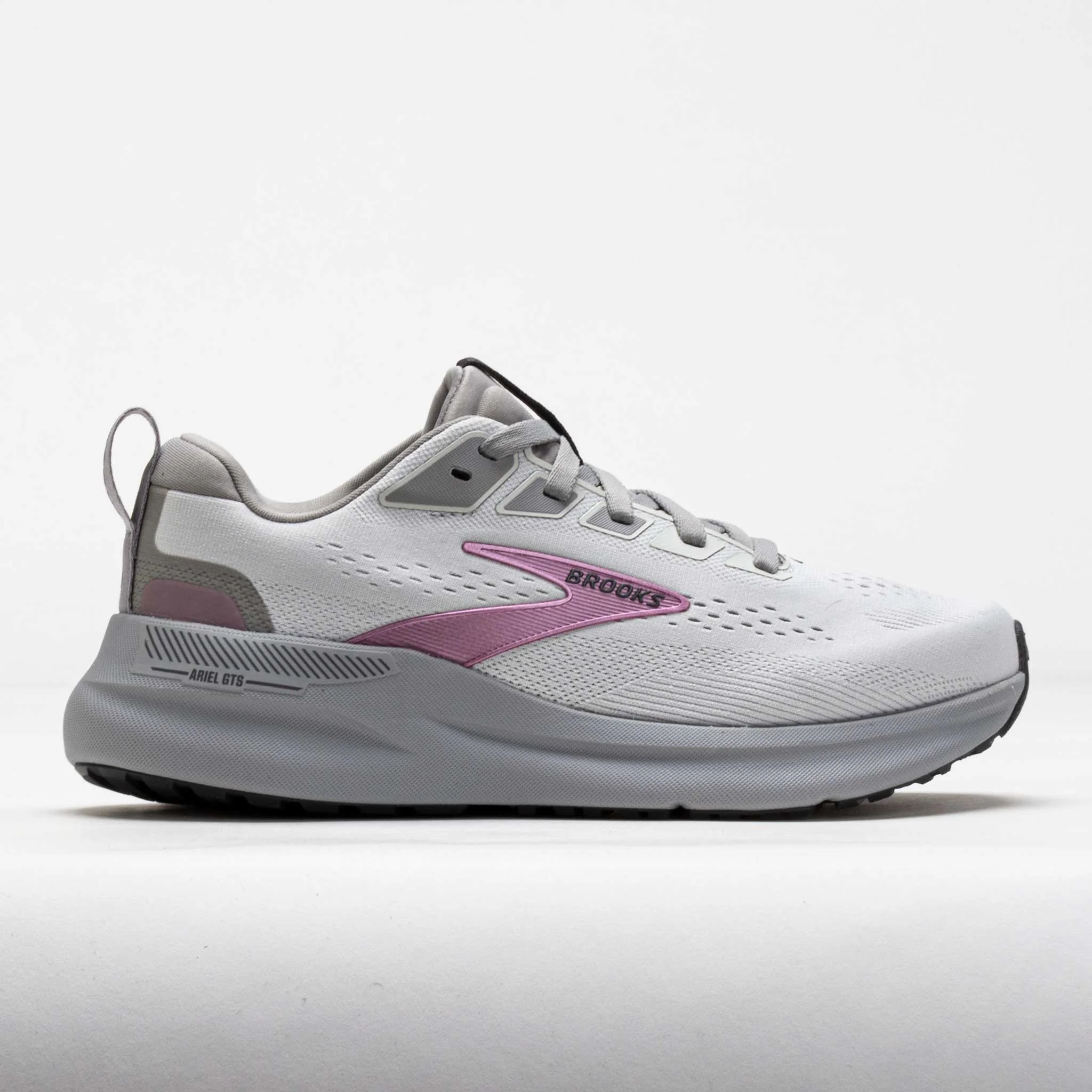 Durable cushioning meets structured support in the Brooks Ariel GTS 26! This stability shoe features GuideRails® technology to align your stride. Every step on the DNA LOFT v3 midsole provides ultra-soft protection for a reliable running experience. If you want to start your runs with a strong foundation, the Brooks Ariel GTS 26 keeps you moving through the miles! What's New? - Heel pull tab allows easy on/off capabilities. - RoadTack rubber outsole provides eco-friendly traction. Who's it for? - Runners who need a shoe with maximum support for overpronation. Key Features: - GuideRails™ support: Structured technology lets you move confidently and comfortably, working with a wide base for trustworthy transitions. - Comfortable, durable cushioning: Nitrogen-infused DNA LOFT v3 delivers soft and adaptive cushioning without sacrificing support. - Accommodating, secure fit: Modern, streamlined upper provides a generous fit for various foot types. Secure lockdown offers distraction-free comfort. PRODUCT SPECIFICATIONS - Support: support - Color: Oyster Mushroom/Alloy/Pink - Offset: 10mm - Weight: 11.1 Ounces - Item #: 044267 - Style #: 1204441B094 US sales only.