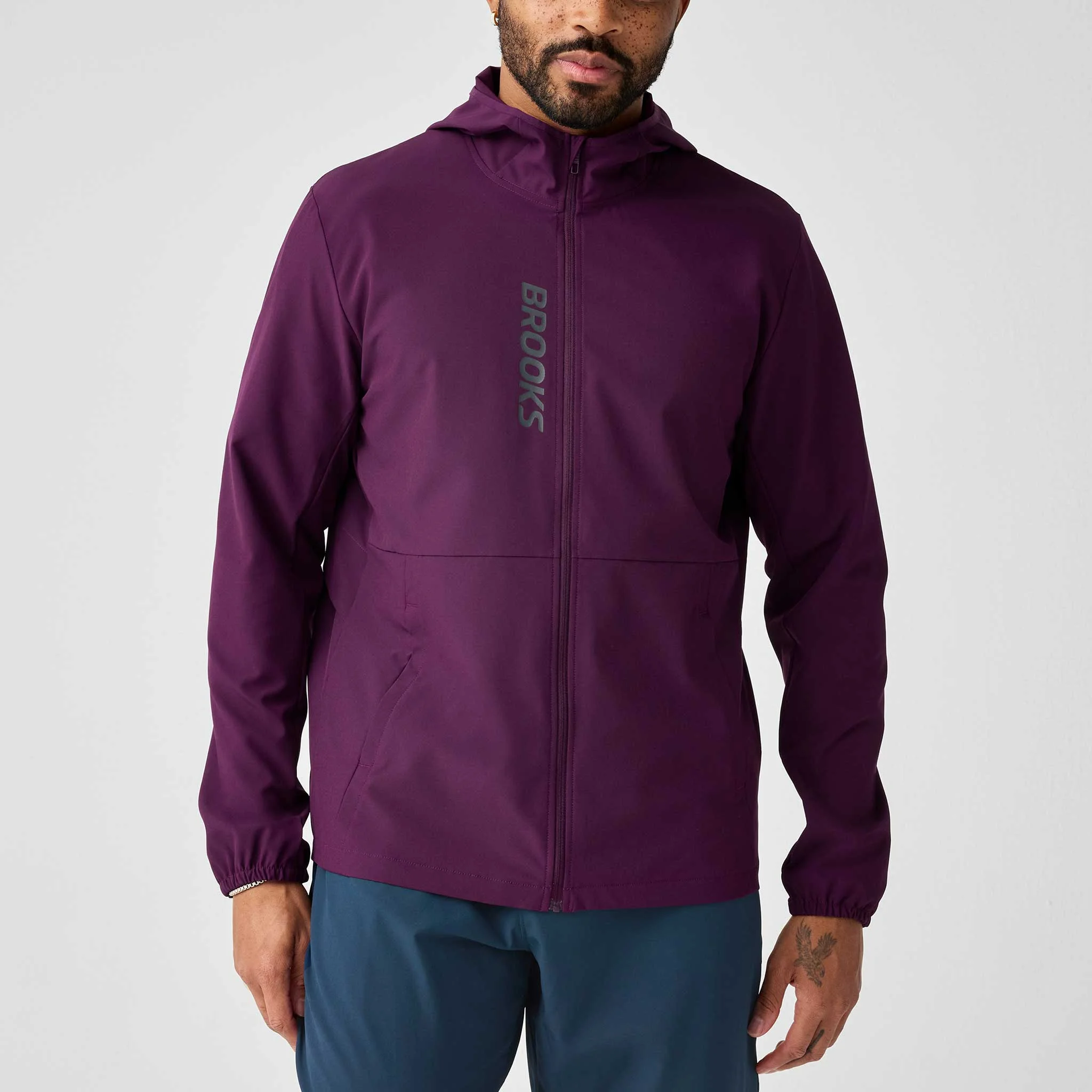 Get reliable protection from the elements in the Brooks Canopy Jacket! Made with a four-way stretch fabric, this running jacket features a DWR treatment to protect against swirling winds and pouring rain. Keep your essentials safe in the hand pockets, while venting across the back keeps you cool and comfortable. When the clouds roll in, find comfort in the Brooks Canopy Jacket! Key Features: - Unrestricted range of motion: Four-way stretch fabric treated with a DWR finish to protect against the elements without compromising free movement. - Breathable: Venting across the center back keeps you cool without sacrificing weather protection. - Secure storage: Hand pockets with additional phone-sized pocket inside to protect valuables. - Semi-fitted - Elastic binding and chin guard keep the hood secure. - Reflective bar at back - DWR fabric made without PFAS PRODUCT SPECIFICATIONS - Composition: 89% Polyester/11% Spandex - Item #: 057922 - Style #: 211582526 US sales only. Item is returnable, but does not qualify for free returns.
