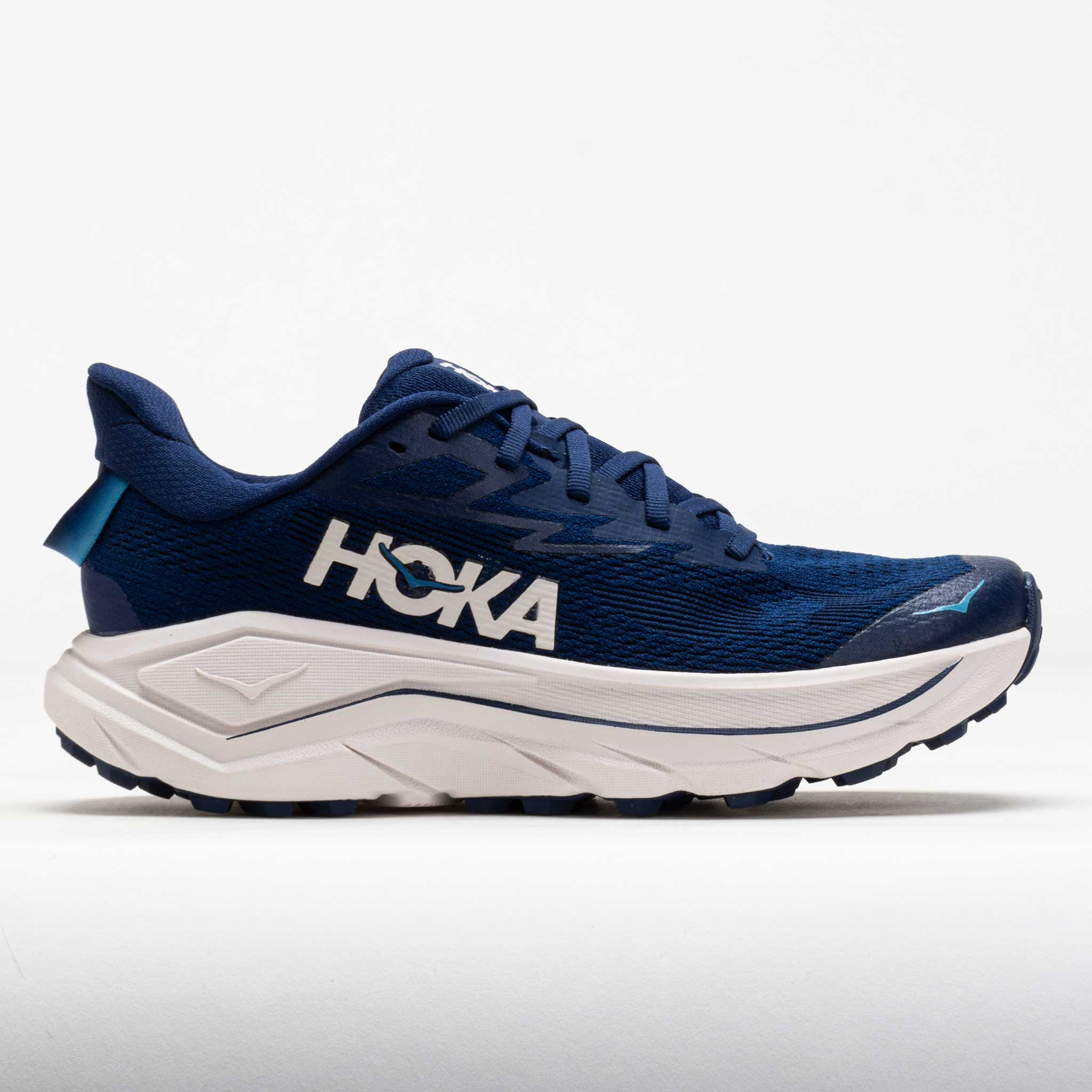 Light on the trail and smooth on the street, the HOKA Challenger 8 adapts to any environment! Known for its cushioned ride, this gravel-grinding workhorse features more underfoot foam and an improved fit. Slide into a minimal mesh upper with a plush collar and durable rubber toe cap for protection. Enjoy all-terrain traction from the multi-directional outsole lugs. Built at the intersection of road and trail, the HOKA Challenger 8 thrives on any surface! What's New? - New last with increased drop and an improved fit in the forefoot and instep. - Updated lug design amplifies traction on various surfaces. Who's it for? - Runners who want to blaze the trails in a light and fast shoe. - Runners who enjoy a smooth ride on various surfaces, from rugged trails to paved roads. Shoe Technology Upper: Engineered mesh upper delivers breathability to keep you comfortable. Extended heel pull offers easy entry. Midsole: Compression molded EVA provides a plush ride. Outsole: Durabrasion rubber outsole adapts to any surface. Multi-directional 4mm lugs provide all-terrain traction. PRODUCT SPECIFICATIONS - Color: Midnight Blue/Grout - Offset: 8mm - Weight: 8.9 Ounces - Item #: 043682 - Style #: 1168717-MGRT US sales only.
