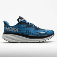 Run in any condition with the HOKA Clifton 9 GTX! Soft and responsive, this fan-favorite shoe protects you in stormy weather. Enjoy weather-ready protection in the jacquard knit upper with GORE-TEX Invisible Fit technology. Rain or shine, the HOKA Clifton 9 GTX helps you find your runner's high! What's New? - Extra 3mm stack height in the midsole improves softness and protection for daily training runs. - Improved outsole design adds traction and durability in high-wear areas. Who's it for? - Neutral runners who need a reliable trainer for long distances and high weekly mileage. - Runners searching for a smooth and comfortable shoe to wear during marathons or recovery runs. Shoe Technology Upper: Creel jacquard knit upper provides lightweight, long-lasting comfort. GORE-TEX Invisible Fit technology provides waterproof protection and breathability. Streamlined tongue with single-side medial gusset offers a secure midfoot lockdown. Plush heel provides step-in comfort. Made from 100% vegan materials for responsible construction. 360° reflectivity improves visibility. Midsole: CMEVA midsole offers plush and responsive cushioning with every step. Early stage Meta-Rocker provides a smooth rolling sensation to drive you forward. Inherently stable geometry allows smooth transitions. Outsole: Durabrasion rubber offers high-quality traction for slick surfaces. Traction pods provide more flush ground contact. PRODUCT SPECIFICATIONS - Color: Black/Foggy Night - Offset: 5mm - Weight: 9.6 Ounces - Item #: 043117 - Style #: 1141470F-BGYN US sales only.