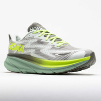Run your miles in any weather with the HOKA Clifton 9 GTX! Soft and responsive, this fan-favorite shoe keeps you protected in inclement conditions. Slide into a jacquard knit upper with GORE-TEX Invisible Fit technology for weather-ready protection. Rain or shine, the HOKA Clifton 9 GTX helps you find your runner's high! What's New? - Extra 3mm stack height in the midsole provides more softness and protection for daily training runs. - Improved outsole design adds traction and durability in high-wear areas. Who's it for? - Neutral runners who need a reliable trainer for long distances and high weekly mileage. - Runners searching for a smooth and comfortable shoe to wear during marathons or recovery runs. Shoe Technology Upper: Creel jacquard knit upper provides lightweight, long-lasting comfort. GORE-TEX Invisible Fit technology provides breathable and waterproof ventilation. Streamlined tongue with single-side medial gusset offers a secure midfoot lockdown. Plush heel provides step-in comfort. Made from 100% vegan materials for responsible construction, including recycled mesh content and polyester laces. 360° reflectivity improves visibility. Midsole: Compression-molded EVA midsole offers plush and responsive cushioning with every step. Early stage Meta-Rocker provides a smooth rolling sensation to drive you forward. Inherently stable geometry allows smooth transitions. Outsole: Durabrasion rubber offers high-quality traction for slick surfaces. Traction pods provide more flush ground contact. PRODUCT SPECIFICATIONS - Color: Slate/Aloe Vera - Offset: 5mm - Weight: 9.6 Ounces - Item #: 041722 - Style #: 1141470-STLV US sales only.