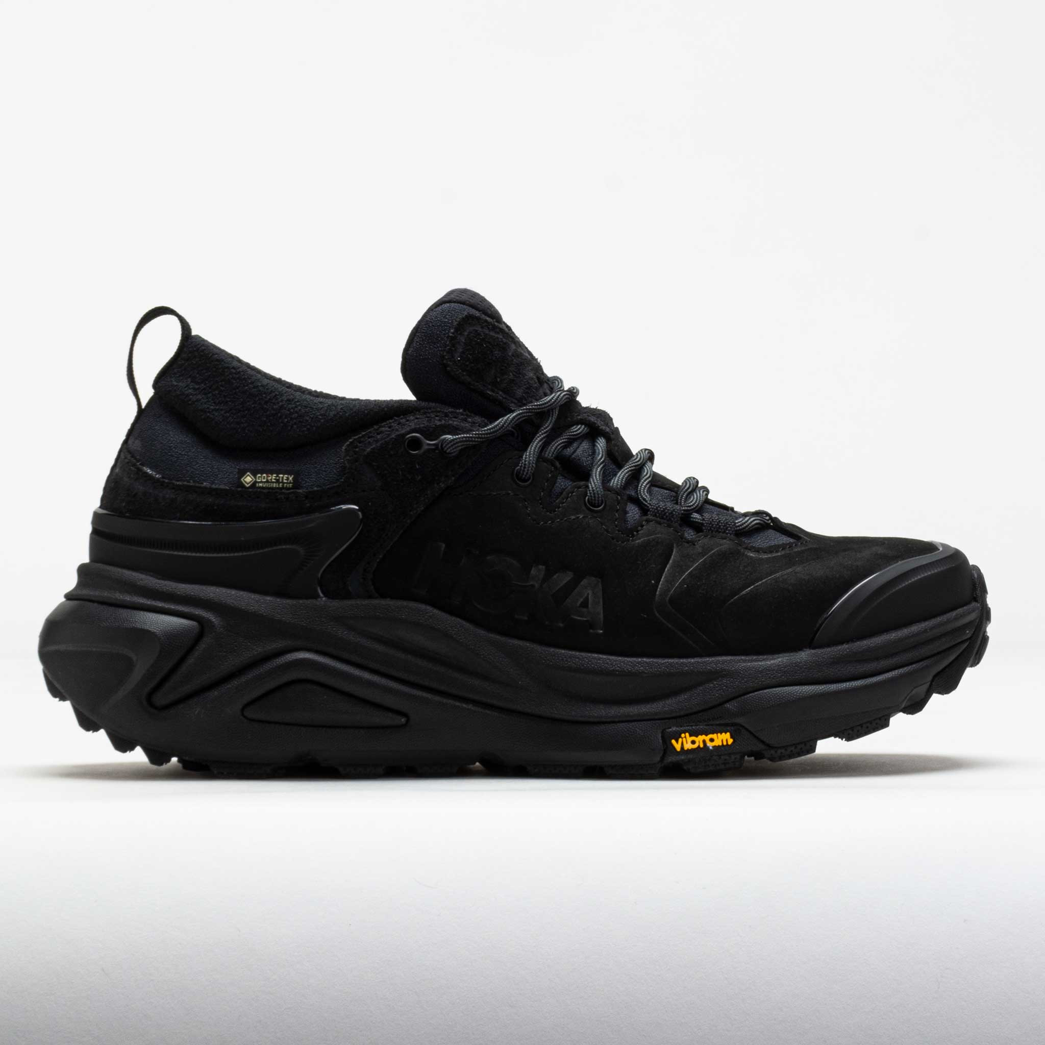 Ready for the long haul? Embrace the adventure in the HOKA Kaha 3 Low GTX! This low-cut hiker is softer and more durable than its predecessor. Fight foot fatigue under the cushy sockliner and dual-density sugarcane EVA midsole. Stay dry in wet conditions in the GORE-TEX Invisible Fit membrane. The Vibram® Megagrip outsole provides reliable traction on loose terrain. With pinnacle plushness and weather-ready resistance, the HOKA Kaha 3 Low GTX is perfect for day hikes and extended adventures! What's New? - GORE-TEX Invisible Fit, sugarcane EVA midsole, one-piece outsole design, molded TPU heel counter/toecap and beveled edges for a streamlined design. Who's it for? - Adventurous hikers looking for a max-cushioned shoe to wear during off-road explorations. - HOKA runners who love the Bondi and want a similar cushioned ride for hiking. Shoe Technology Upper: Leather Working Group Gold-Rated waterproof nubuck leather protects from inclement weather. GORE-TEX Invisible Fit shields you from the elements. Quick lace metal top hooks let you lock in quickly for a secure fit. Abrasion-resistant toe cap and heel for durability. 100% Recycled polyester quarter mesh, tongue mesh and lining mesh create an eco-friendly construction. Achilles-friendly heel collar mitigates heel pressure. Topically applied PFC-free water repellency treatment adds sustainable protection. Midsole: Dual-density midsole made with 30% sugarcane EVA for eco-friendly comfort. HUBBLE® and SwallowTail™ design provides a smoother ride. Late-stage Meta-Rocker with integrated flex grooves helps you move forward. Rubberized EVA midsole provides plush comfort. Molded PU sockliner with 50% Susterra™ for sustainable, step-in comfort. Outsole: One-piece Vibram® Megagrip with traction Lug and 4mm lugs for toothy traction on rugged terrain. PRODUCT SPECIFICATIONS - Color: Black/Black - Weight: 15.7 Ounces (Size 8.5) - Item #: 631746 - Style #: 1162532-BBLC US sales only.