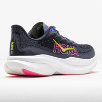 Take flight in the HOKA Mach 6! This neutral running shoe energizes your daily miles with a lively ride. Enjoy foot-cradling comfort in the creel jacquard upper. Take fast and responsive strides under the supercritical foam midsole. Strategic rubber coverage on the outsole adds durability for your daily miles. Fast, light and responsive, the HOKA Mach 6 provides easy access to speed! What's New? - Supercritical foam midsole delivers a softer, more responsive ride. - Creel jacquard upper with refined collar and tongue improves step-in comfort. - Increased rubber coverage on the outsole adds durability for daily mileage. Who's it for? - Neutral runners looking for a comfortable shoe to wear during race day and daily training runs. - HOKA fans who have worn the popular Clifton or Bondi in the past but want something lighter and more responsive for tempo training or race day. Shoe Technology Upper: Creel jacquard mesh upper with zonal breathability to keep you comfortable. Streamlined foam collar reduces bulk. Dual internal gusset prevents tongue movement for foot-hugging comfort. Midsole: Supercritical foam midsole provides a light and responsive ride. Outsole: Strategic rubber coverage provides minimal weight and maximum durability. PRODUCT SPECIFICATIONS - Support: neutral - Color: Grey Skies/Charcoal Grey - Offset: 5mm - Weight: 6.7 Ounces - Item #: 043039 - Style #: 1147810-GHR US sales only.