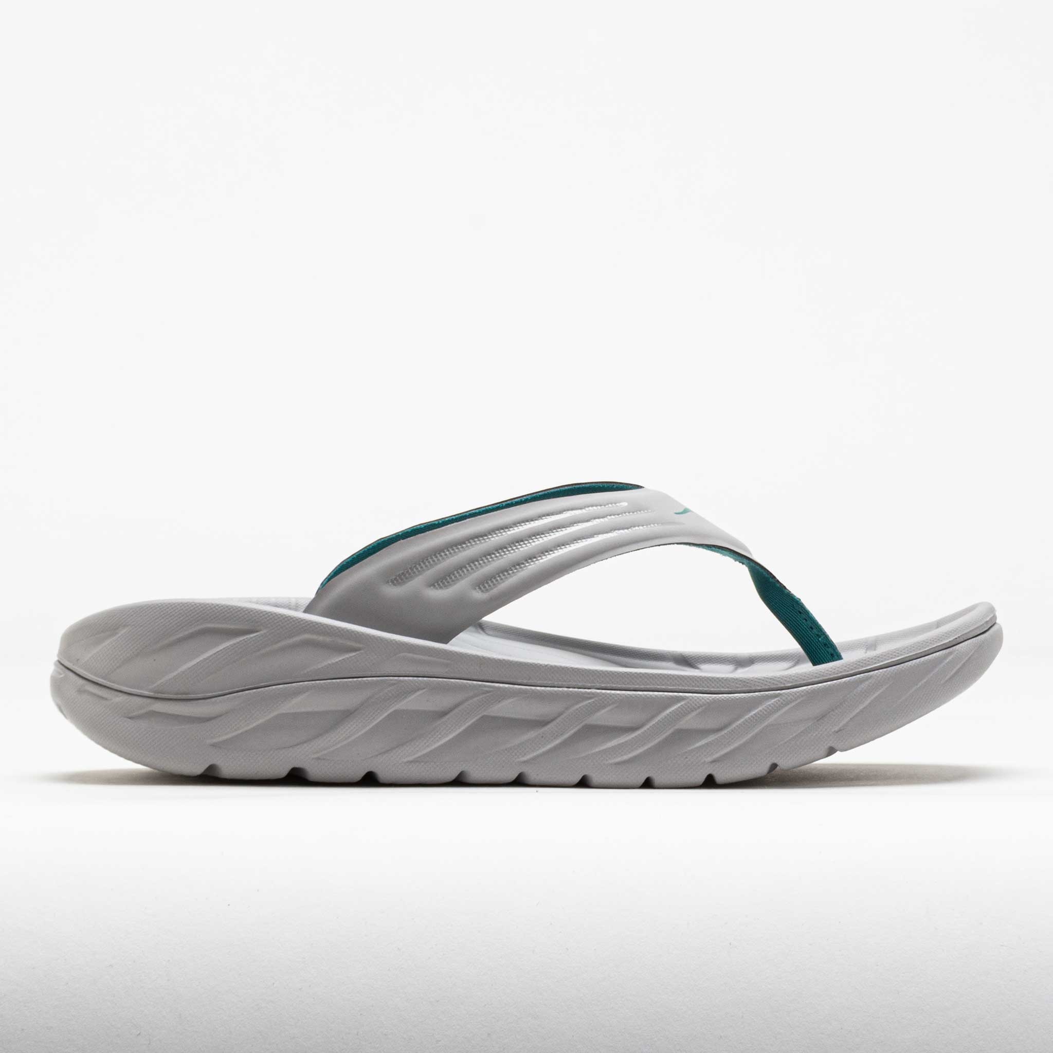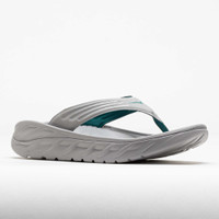Tired feet? Let the Hoka Ora Recovery Flip aid in your recovery! These luxurious flip-flops feature plush cushioning from an oversized midsole and smooth transitions from the Meta-Rocker technology. Upgraded toe straps remove moisture to keep you comfortable. Perfect after a hard run or a long day, the Hoka Ora Recovery Flip lets you slip into relaxation. Shoe Technology Upper: Soft top layer EVA provides step-in comfort. Jersey textile strap wicks moisture to keep you dry. Midsole: Early-Stage Meta-Rocker provides a smooth and lively ride. Dual-layer construction includes a soft top layer and a resilient midsole/outsole for durable support. Outsole: Strategic groove placement offers smooth comfort and reliable traction. PRODUCT SPECIFICATIONS - Color: Stellar Grey/Oceanic - Weight: 5.8 Ounces - Item #: 570747 - Style #: 1099675-SYC US sales only. Item is returnable, but does not qualify for free returns.