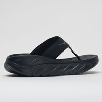 The Hoka One One Ora Recovery Flip is the perfect way to relax after a tough run. These comfortable flip-flops feature plush cushioning from an oversized midsole and easy walking from the Meta-Rocker technology. Keep these handy to support your tired feet on race day or any long day. Shoe Technology Upper: Soft top layer EVA provides immediate step-in comfort. Features a jersey textile strap for comfort and moisture-wicking. Midsole: Early-Stage Meta-Rocker delivers a smooth ride and increased propulsion. Features dual-layer construction. Dual layer construction incorporates soft top layer and resilient midsole/outsole for durability and stability. Outsole: Offers strategic groove placement for comfort and traction. PRODUCT SPECIFICATIONS - Color: Black/Dark Gull Gray - Weight: 4.5 Ounces - Item #: 570521 - Style #: 1117910-BDGGR US sales only. Item is returnable, but does not qualify for free returns.