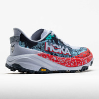 Tame the trail in the HOKA Speedgoat 6! This ultralight trailblazer combines soft cushioning with aggressive traction for a grippy and responsive ride. Blaze technical terrain under the energetic and stable CMEVA midsole. The Vibram Megagrip outsole provides confident footing on any surface. With a hoof-inspired lug design, the HOKA Speedgoat 6 proves there's only one GOAT on the trail. And this is it! What's New? - Breathable woven upper enhances comfort. - Lighter, more responsive midsole increases agility on off-road courses. - Internal chassis provides a secure midfoot lockdown. - Dynamic vamp creates a more spacious forefoot. - Dual-gusset tongue provides a plush step-in feel. Who's it for? - Neutral runners who want a trail shoe that provides speed and comfort on technical terrain. - Competitive trail athletes who require aggressive grip for unpredictable terrain. - Active hikers who need shoes that won't keep them from exploring the unknown on their adventures. Shoe Technology Upper: Lightweight woven textile upper deliver breathable, foot-hugging comfort. Internal support chassis offers a secure lockdown. Dual-sided gusseted tongue improves step-in comfort. Dynamic vamp allows for more forefoot accommodation. Toe bumper protects against rocks and debris. Midsole: CMEVA midsole provides more speed, agility and responsiveness for off-road runs. Late-stage Meta-Rocker technology drives you forward with a smooth and efficient stride. Outsole: Vibram® Megagrip with Traction Lug improves traction on technical terrain. 5mm lugs offer additional support and stability for ascending and descending on trails. PRODUCT SPECIFICATIONS - Color: Gull/Stormy Skies - Offset: 5mm - Weight: 8.6 Ounces - Item #: 041757 - Style #: 1147811-GKS US sales only.