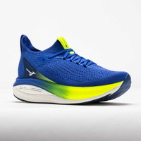 Find your flow in the Mizuno Neo Vista 2! This neutral running shoe is the perfect long run companion. Get a secure and accommodating fit in the sleek engineered knit upper. Feel a soft and bouncy ride on the MIZUNO ENERZY NXT midsole. Smooth Speed Assist technology provides for effortless transitions at any pace. From long distances to mile repeats, the Mizuno Neo Vista 2 leads a smooth and responsive ride. What's New? - MIZUNO ENERZY NXT top layer features nitrogen-infused TPU for a soft and responsive ride. EVA bottom layer adds stability for smooth landings. - Extra outsole rubber adds more coverage, while strategic cutouts reduce weight. - Engineered knit upper offers a more accommodating fit for various foot types. Who's it for? - Neutral runners looking for a daily trainer they can wear for all types of runs--from slow jogs to long runs and speed sessions. Shoe Technology Upper: Knit upper combines a sleek design and an accommodating fit for all foot types. Made with recycled materials for eco-friendly comfort. Midsole: MIZUNO ENERZY NXT provides maximum cushioning and energy return for soft strides. Glass fiber MIZUNO WAVE® plate disperses energy from impact to provide a stable landing. Smooth Speed Assist geometry features a significant heel bevel that encourages an efficient midfoot landing, while the aggressive forefoot rocker delivers a smooth and propulsive transition. Outsole: Rubber outsole provides reliable traction on road surfaces. PRODUCT SPECIFICATIONS - Support: neutral - Color: Dazzling Blue/White - Forefoot Height: 37mm - Heel Height: 45mm - Offset: 8mm - Weight: 9.4 Ounces (Size 9) - Item #: 044043 - Style #: 411539.5B00