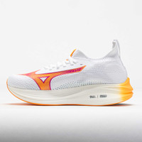 Find peace in pursuit of your goals with the Mizuno Neo Zen! This neutral running shoe blends energetic cushioning and eco-friendly materials for a sustainably smooth ride. Enjoy a sock-like fit in the soft knit upper. MIZUNO ENERZY NXT in the midsole provides soft and responsive landings, while SMOOTH SPEED ASSIST geometry aids an efficient gait. Soft, light and responsive, the Mizuno Zen lets you get lost in the miles! Who's it for? - Neutral runners looking for a super trainer to wear during swift daily miles. Shoe Technology Upper: Soft knit upper adapts to your foot shape for customized comfort. Made with more than 60% eco-friendly materials to reduce carbon emissions. Midsole: MIZUNO ENERZY NXT provides a soft and responsive ride. SMOOTH SPEED ASSIST technology uses foot angle science to reduce calf strain and create smooth transitions. Outsole: X-10 rubber offers long-lasting traction. Wide base delivers a swift and stable ride. PRODUCT SPECIFICATIONS - Support: neutral - Color: White/Tang Orange - Forefoot Height: 34mm - Heel Height: 40mm - Offset: 6mm - Weight: 8.0 Ounces (Size 9) - Item #: 042924 - Style #: 411497.0026