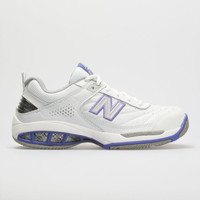 New Balance 806 tennis shoes are the perfect durable and stable option for all-court players. Comfortable lining, a supportive midfoot, and maximum traction create the ultimate combination for effective play. Perfect for players that need some motion control. Upper: Full grain leather provides optimal support and durability. A long-wear drag tip helps protect the toe box area. Padded tongue and heel collar enhances instep comfort. Lace up front offers a customizable fit. An external loop at the heel makes the shoes easier to slip on. Midsole:Lightning Dry® liner keeps your feet dry and comfortable as you train. C-CAP® midsole provides cushioning and support. ABZORB® cushioning in the midfoot provides exceptional shock absorption. ROLLBAR® with medial and lateral TPU Posts give ultimate motion control. Outsole: Non-marking rubber wont mark floors. Herringbone allows increased traction for lateral motion and quick pivoting. Ndurance® rubber gives maximum outsole durability. PRODUCT SPECIFICATIONS - Color: White/Purple - Weight: 12.5 Ounces (size 7½) - Item #: 112947 - Style #: WC806W US sales only.