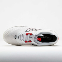 Fly across the court in the New Balance FuelCell 996v6! Fast and flexible, this lightweight tennis shoe features a FuelCell midsole to energize every move. Slide into a head-turning mesh upper and win style points over your opponents. The hardwearing NDurance rubber outsole provides traction and durability for long rallies. If you want to achieve top speed, try the New Balance FuelCell 996v6! What's New? - Higher collar and tighter heel lockdown improve stability. Shoe Technology Upper: Synthetic/mesh upper provides comfort and breathability. NDure upper technology adds protection in high-wear areas. PU guard adds targeted durability where it's needed most. Adjustable lace closure for a customized fit. Midsole: FuelCell midsole foam delivers a propulsive feel to drive you forward. Raised lateral outrigger and higher stack height provide comfort and protection. Outsole: NDurance rubber outsole improves durability in high-wear areas. The herringbone pattern provides excellent traction on the court. PRODUCT SPECIFICATIONS - Color: White/Navy - Weight: 13.8 Ounces (Size 9) - Item #: 118066 - Style #: MCH996W6 US sales only.