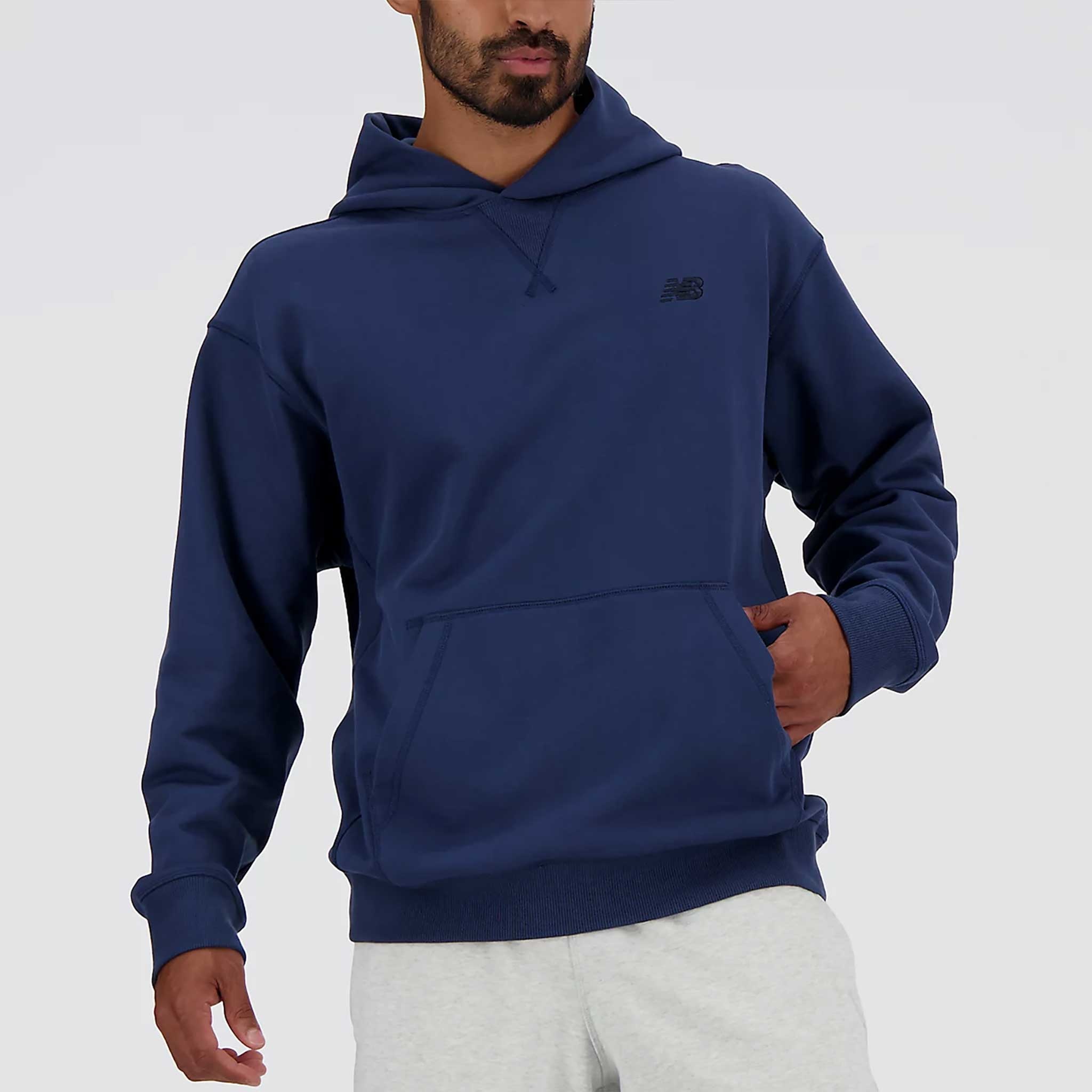 Eleavte your comfort zone in the New Balance Athletics French Terry Hoodie! Constructed with a soft French terry fabric, this classic hoodie features a tonal, embroidered logo at the chest for subtle style. - Tonal embroidered logo at left chest - Carrot ribbed detail at neckline - Kangaroo pocket - Hooded - Pullover design - Relaxed and roomy fit designed to fit loosely around the body PRODUCT SPECIFICATIONS - Composition: 100% Cotton - Item #: 057831 - Style #: MT41534-AHH US sales only. Item is returnable, but does not qualify for free returns.