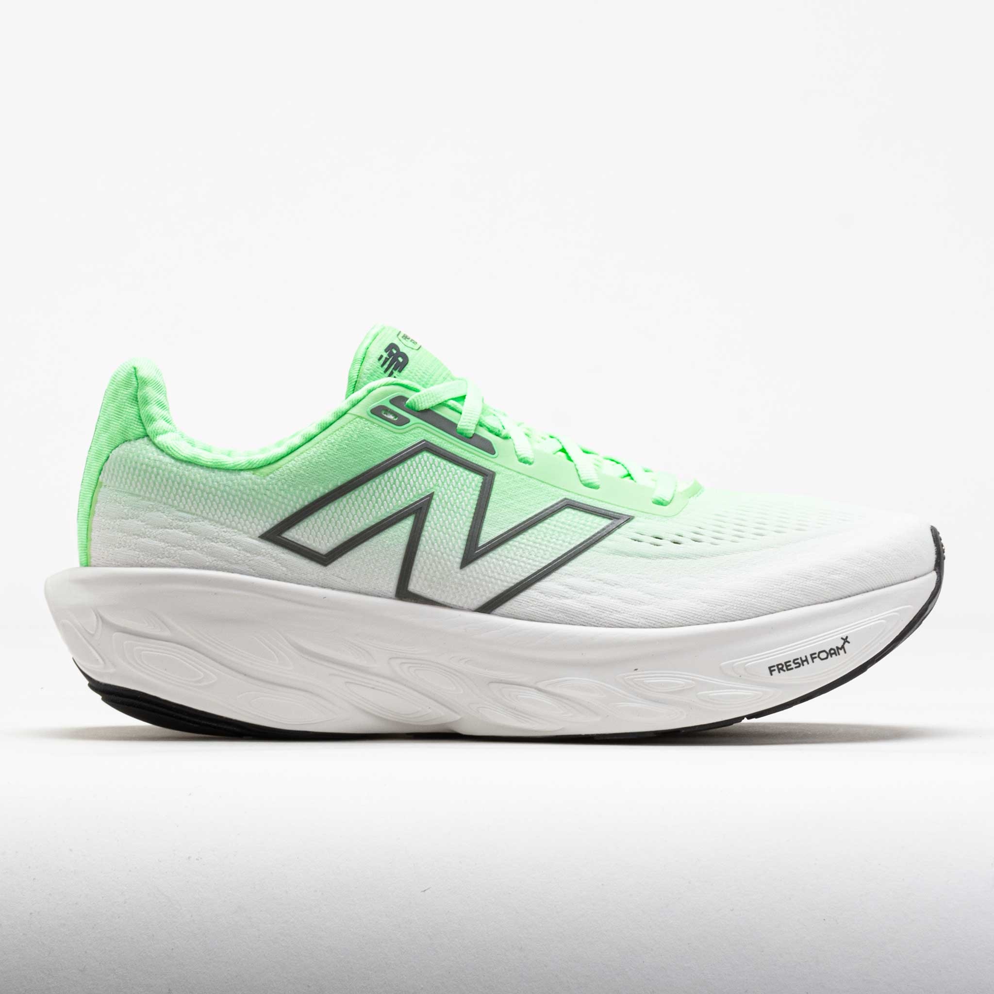 Enjoy comfort from every angle in the New Balance Fresh Foam X 1080v14! This neutral running shoe features a Fresh Foam X midsole for first-class comfort. Enjoy a plush and premium feel in the breathable jacquard mesh upper. Extra outsole rubber adds durability for your daily miles. From long distances to recovery runs, the New Balance Fresh Foam X 1080v14 conquers any challenge! What's New? - Triple jacquard mesh upper improves breathability to keep you comfortable. - Extra rubber in high-wear areas enhances durability for daily miles. - Improved forefoot stiffness guides smoother transitions. Who's it for? - Neutral runners who want a premium daily trainer to handle long distances, easy runs and high weekly mileage. - Casual or speed walkers who want soft cushion during their exercise. - Anyone with a wide foot who needs a shoe with an accommodating fit. - Runners who want a versatile shoe they can use from training to race day. Shoe Technology Upper: Triple jacquard mesh upper improves breathability in key areas to keep you comfortable. Gusseted tongue delivers a secure midfoot fit. Midsole: Fresh Foam X midsole provides soft and light cushioning. Rocker profile delivers a smooth and natural ride. Midsole mapping adds more foam to wider areas and improves flexibility at narrower areas for fluid transitions. Outsole: Ndurance rubber outsole improves durability in high wear areas. Diagonal forefoot grooves add stiffness for smooth transitions. PRODUCT SPECIFICATIONS - Support: neutral - Color: Electric Jade/Reflection/Silver - Weight: 9.4 Ounces (Size 8.5) - Item #: 043504 - Style #: M1080J14 US sales only.