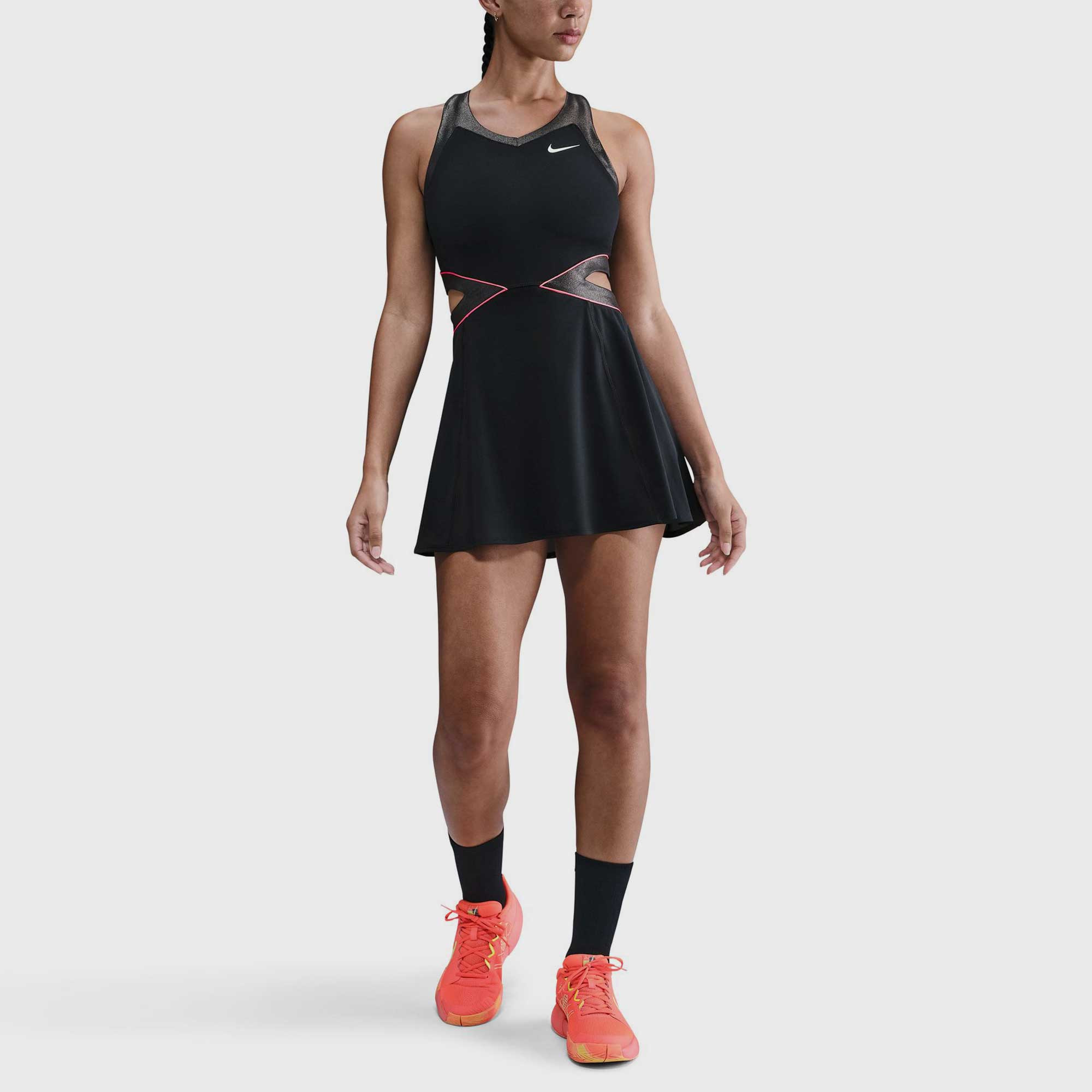 Stand out on the court in the Nike Dri-Fit New York Slam Dress! Made from a smooth and lightweight fabric, this tennis dress flows with your every move. Mesh panels and an open-waist design improve breathability when the pressure rises. - Nike Dri-Fit technology moves sweat away from your skin to keep you dry and comfortable. - Mesh panels on the back and skirt add ventilation - Racerback design PRODUCT SPECIFICATIONS - Composition: 83% Polyester/17% Spandex - Item #: 758617 - Style #: II6186-010 US sales only. Item is returnable, but does not qualify for free returns.