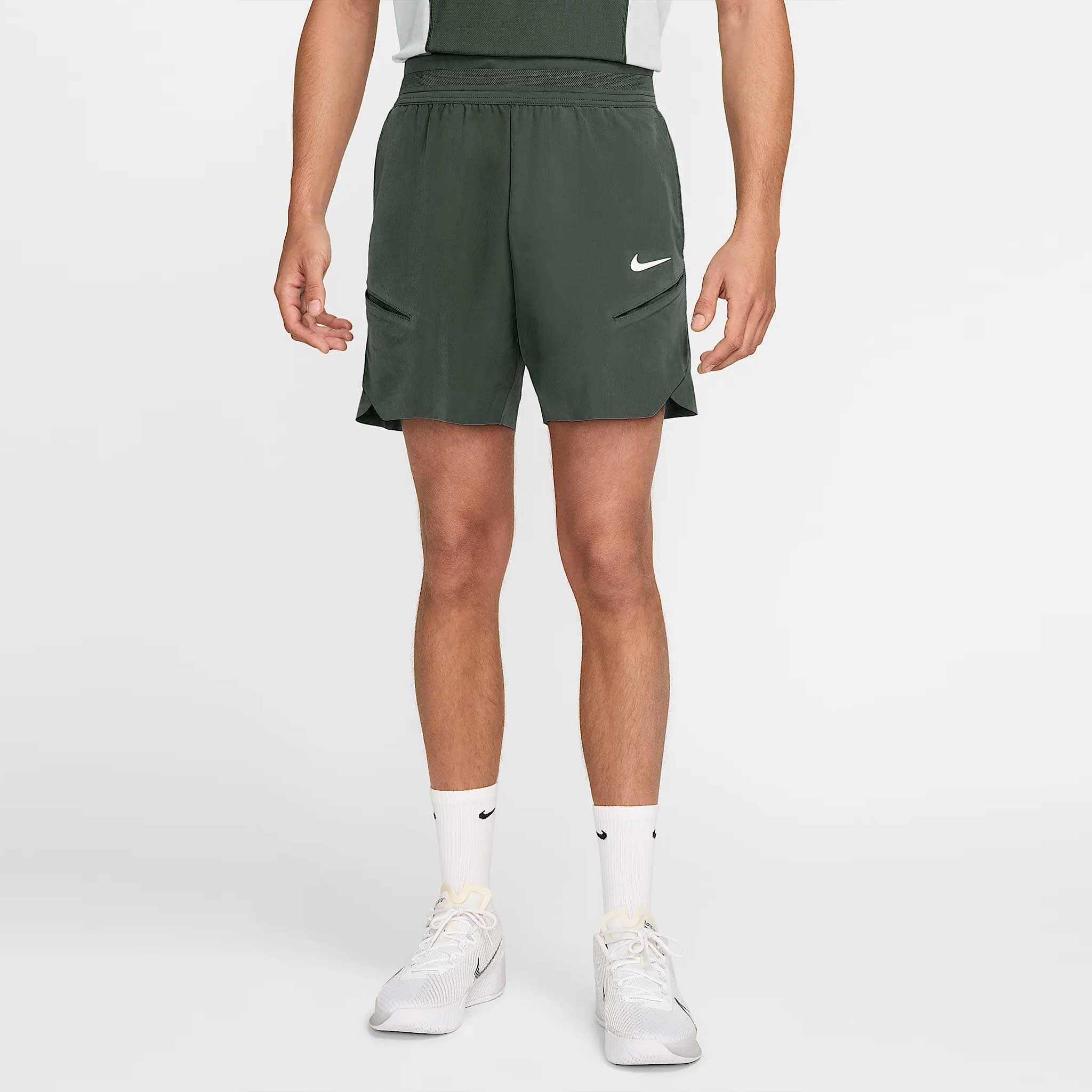 Moisture-wicking technology meets lightweight breathability in the Nike Dri-Fit Slam Short! These tennis shorts feature a four-way stretch material for unrestricted movement. Angled pleats at the bottom of each pocket create a home for tennis balls, so you're always ready for the next match. - Nike Dri-FIT technology wicks sweat away from your skin to keep you dry and comfortable. - Angled pleats at the bottom of each pocket let you securely store tennis balls during play. - Smooth woven fabric with a four-way stretch helps you move naturally. - Mesh waistband improves breathability. - Elastic waistband with drawcord offers a secure fit. - Reinforced seams provide extra durability. PRODUCT SPECIFICATIONS - Composition: 89% Polyester/11% Spandex - Item #: 758524 - Style #: FZ6937-355 US sales only. Item is returnable, but does not qualify for free returns.