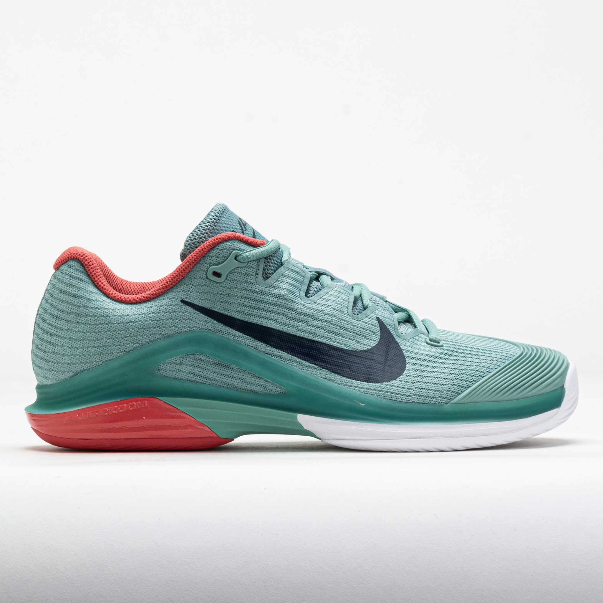 Reach every return in the Nike Vapor 12 Premium! Featuring a redesigned upper and tread pattern, this speedy tennis shoe gets you to the ball faster. Find lightweight protection in the breathable mesh upper. The Air Zoom unit in the heel adds a spring to every step, helping you stay on the attack. Stick and cut in any direction under the herringbone outsole. Light, responsive and aggressive, the Nike Vapor 12 Premium lets you unleash blistering speed! Shoe Technology Upper: Lightweight upper reduces weight while maintaining durability in high-wear areas. Midfoot band allows you to pull the laces tighter to enhance the fit for quicker cuts. Midsole: Zoom Air unit in the heel adds a spring to every step. Firm midfoot support piece provides stability during lateral movements. Midsole foam between the plastic and rubber keeps you light on your feet. Outsole: Herringbone tread pattern allows you to decelerate, plant and back into position without rounding off your cuts. PRODUCT SPECIFICATIONS - Color: Cannon/Armory Navy/White/Adobe - Weight: 13.6 Ounces (Size 9) - Item #: 118666 - Style #: FV5552-004 US sales only.