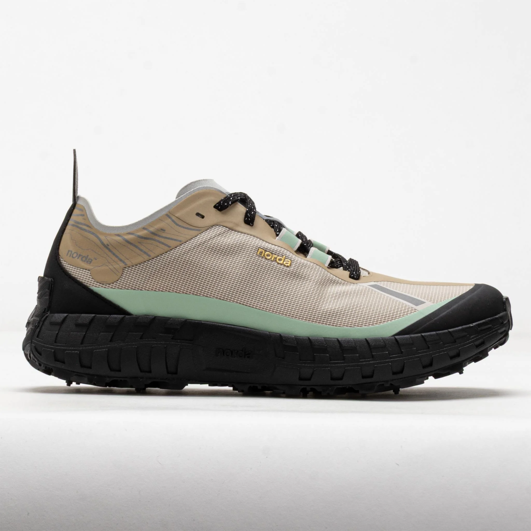 Inspired by Canada's toughest conditions, the norda™ 001A thrives in the harshest climates. This technical trail shoe blends cushioning, fit, weight, and grip to conquer any course. Stay protected from trail hazards in the durable Dyneema® one-piece woven upper. Every stride on the light and energetic Arnitel® TPEE midsole provides best-in-class comfort. Find superior footing on any surface under the Vibram® Mega Grip outsole. If you want to push the boundaries of how fast or far you can go, the norda™ 001A supports your goals! What's New? - Proprietary 2022 norda™ 001 upper material is 100% sustainably made with bio-based Dyneema® and recycled Cordura® nylon. - Arnitel® TPEE midsole provides lightweight cushioning for long-distance comfort. Who's it for? - Trail runners looking to test their limits in a light and durable off-road shoe. - Environmentally conscious runners who want to support a company that believes performance and sustainability should always run together. Shoe Technology Upper: Dyneema® one-piece woven upper provides durable protection against trail hazards. Dyneema® offers the lowest carbon footprint of high-performance fibers. Comfortable sock construction secures your foot in place. Diamond-design Dyneema® laces add abrasion resistance. Custom-designed TPU insole provides shock absorption and energy return. Midsole: Arnitel® TPEE midsole provides energy return, support and durability. Engineered Soleplate incorporates Vibram® Litebase technology to conserve energy and reduce sole weight. Outsole: 5mm Vibram® Mega Grip lugs provide reliable traction on both wet and dry surfaces. Important Sizing Note: We recommend you add a 1/2 size up from your normal size. PRODUCT SPECIFICATIONS - Color: Astral - Forefoot Height: 21mm - Heel Height: 26mm - Offset: 5mm - Weight: 9.45 Ounces - Item #: 045495 - Style #: 001A-M-ASTRAL