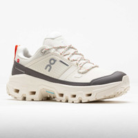 On's flagship hiking boot, the On Cloudrock Low Waterproof blends a running shoe's speed with a hiking shoe's support. A dynamic fit combines with a Missiongrip™ rubber outsole for reliable traction in any condition. Stay dry in the toughest conditions in the recycled waterproof membrane. Updated cloud elements, heel support and a reinforced collar create a more comfortable ride. Inspired by the Cloudventure 3, the closed midsole prevents trail debris from getting stuck in the shoe's grooves. Agile and supportive, the On Cloudrock Low Waterproof leads you on adventures stretching far and wide! Shoe Technology Upper: Nylon vamp mesh upper offers breathability and waterproof protection. TPU overlays add durability. Made with 95% recycled polyester for sustainability. Midsole: High-grade EVA midsole absorbs impact to keep you comfortable. Polypropylene Speedboard® provides support with every step. Outsole: Missiongrip™ rubber sole offers reliable traction on any surface. PRODUCT SPECIFICATIONS - Color: Ivory/Ivory - Weight: 12.3 Ounces (Size 8.5) - Item #: 631699 - Style #: 3WF10143334