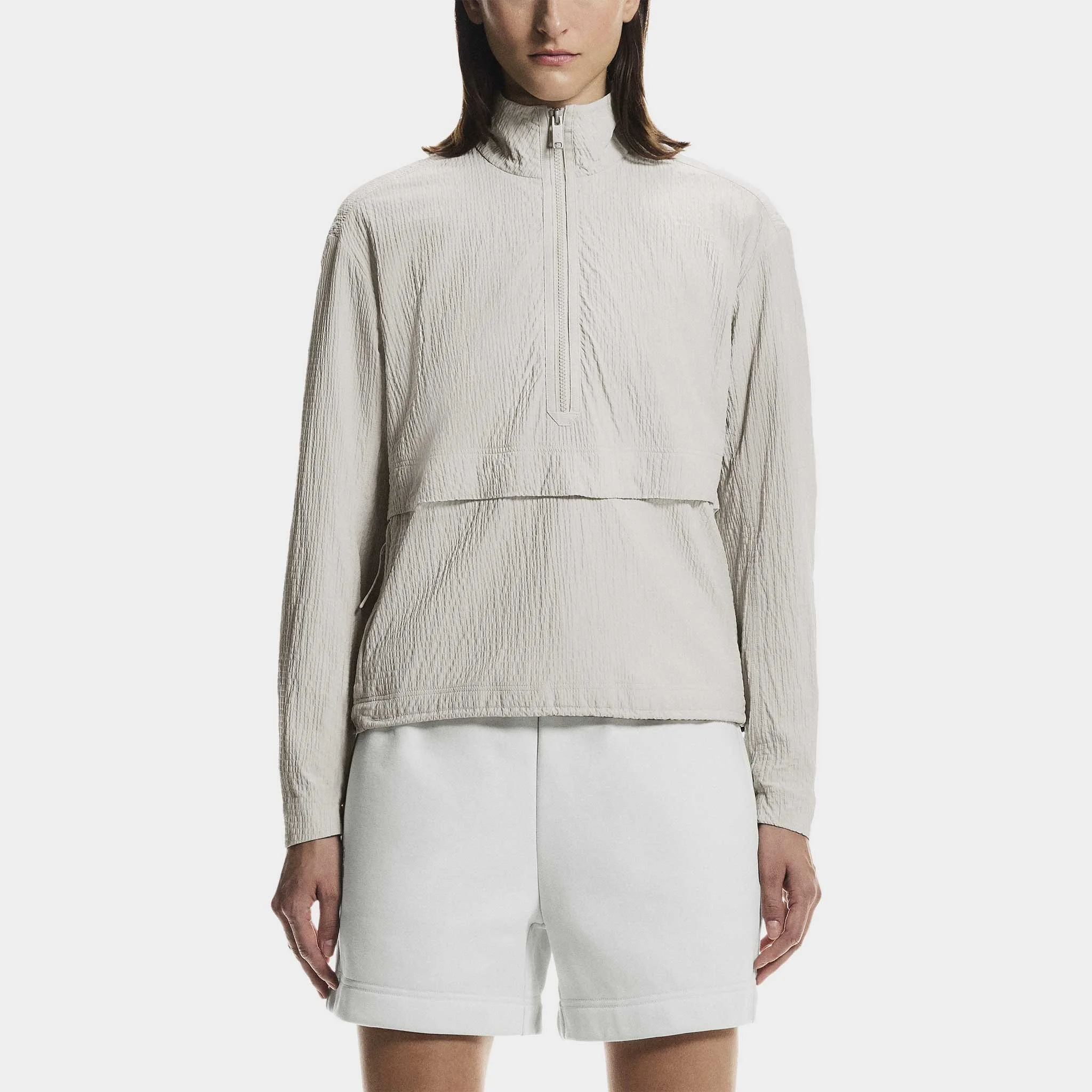 Stay cool and fresh with the On Courtside 1/2 Zip Ease! Synonymous with summer, this half-zip jacket feels like the breeze with a slightly crinkled texture that never needs ironing. Breathable mesh lining and an overlap construction on the back add ventilation to keep you comfortable. Enjoy a custom fit from the dual cord pullers on the hem, while zippered side pockets secure your essentials. Light, stylish and breathable, the On Courtsize 1/2 Zip Ease is perfect for summer evening matches! - Lightweight and breathable fabric keeps you comfortable - Slightly crinkled, textured fabric never needs ironing - Overlap construction on the back adds ventilation - Lined with mesh for breathability - Two cord pullers on the hem for a customizable fit - Embroidered logo on the back adds a premium touch - Two zipped side pockets keep essentials secure PRODUCT SPECIFICATIONS - Composition: Recycled Polyamide 6 / Nylon 6 93% / Elastane 7% - Item #: 758664 - Style #: 1WG10520554 Item is returnable, but does not qualify for free returns.