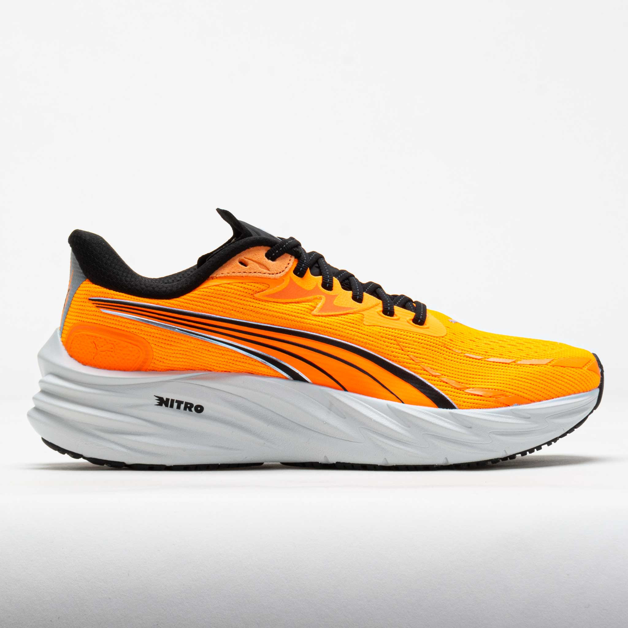 Unleash your inner speed in the PUMA Velocity Nitro 4! Comfortable at any pace, this neutral running shoe handles tempo sessions, recovery days and everything in between. Enjoy a secure fit while you sprint in the engineered mesh upper. A full-length NITRO midsole offers a light and responsive ride, while the PUMAGRIP outsole provides multi-surface traction. From the treadmill to the track, the versatile PUMA Velocity Nitro 4 thrives on any surface! What's New? - The PUMA Velocity Nitro 4 is lighter than its predecessor, increasing responsiveness to reach the runner's high. - Mesh upper improves breathability to keep you comfortable. - Full-length NITROFOAM™ midsole adds responsiveness for a more agile and dynamic ride. Who's it for? - Neutral runners searching for a versatile daily workhorse that can handle various running workouts. Shoe Technology Upper: Engineered knit upper provides stretch and breathability. PWRTAPE reinforcements create a secure and durable lockdown. Made with at least 30% recycled materials for sustainability. Midsole: NITROFOAM™ offers explosive energy return for an effortless ride. Outsole: Durable PUMAGRIP rubber provides multi-surface traction. PRODUCT SPECIFICATIONS - Support: neutral - Color: Heat Fire/Puma Black - Forefoot Height: 26mm - Heel Height: 36mm - Offset: 10mm - Weight: 8.0 Ounces (Size 9) - Item #: 043520 - Style #: 311140-09