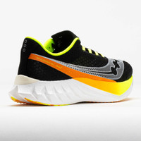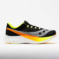 Find your race day ride in the Saucony Endorphin Pro 4! This neutral running shoe features responsive cushioning and a carbon fiber plate to propel every stride. PWRRUN HG and PWRRUN PB foams in the midsole combine with a full-length carbon plate to provide smooth transitions. Enjoy effortless strides from the SPEEDROLL technology, while the heel liner and tongue system create a comfortable fit. Snappy and responsive, the Saucony Endorphin Pro 4 fuels your race-day drive! What's New? - Upgraded dual-cushioning system combines PWRRUN HG and PWRRUN PB for a light and explosive ride. - Lattice designed outsole delivers reliable traction and durability. - Improved race-day upper adds security at high speeds. - SRS (Super Responsive Sockliner) provides a bouncy step-in feel. Who's it for? - Runners looking for a race-day shoe to help them crush PRs and lap the competition. - Anyone who's heard the hype about carbon-plated shoes and wants to try one at an affordable price. Shoe Technology Upper: Lightweight breathable mesh upper provides comfort and security at high speeds. SRS (Super Responsive Sockliner) provides a springy step-in feel. Silky-smooth heel liner and integrated tongue system create a comfortable fit. Midsole: PWRRUN HG and PWRRUN PB foam blends cushioning and energy return for a soft and propulsive ride. Carbon plate adds the right amount of spring and response to reach the finish line. SPEEDROLL technology provides effortless speed and smooth transitions. Outsole: Lattice designed outsole delivers reliable traction. PRODUCT SPECIFICATIONS - Color: Black/VO2 - Forefoot Height: 31.5mm - Heel Height: 39.5mm - Offset: 8mm - Weight: 7.7 Ounces - Item #: 043000 - Style #: S20939-343 US sales only.