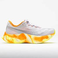 Find your race day ride in the Saucony Endorphin Pro 4! This neutral running shoe features responsive cushioning and a carbon fiber plate to propel you to the finish line. PWRRUN HG and PWRRUN PB foams in the midsole combine with a full-length carbon plate for smooth transitions. Enjoy effortless strides from the SPEEDROLL technology, while the heel liner and tongue system create a comfortable fit. Snappy and responsive, the Saucony Endorphin Pro 4 fuels your race-day drive! What's New? - Upgraded dual-cushioning system combines PWRRUN HG and PWRRUN PB for a light and explosive ride. - Lattice designed outsole delivers reliable traction and durability. - Improved race-day upper adds security at high speeds. - SRS (Super Responsive Sockliner) provides a bouncy step-in feel. Who's it for? - Runners looking for a race-day shoe to help them crush PRs and lap the competition. - Anyone who's heard the hype about carbon-plated shoes and wants to try one at an affordable price. Shoe Technology Upper: Lightweight breathable mesh upper provides comfort and security at high speeds. SRS (Super Responsive Sockliner) provides a springy step-in feel. Silky-smooth heel liner and integrated tongue system create a comfortable fit. Midsole: PWRRUN HG and PWRRUN PB foam blends cushioning and energy return for a soft and propulsive ride. Carbon plate adds the right amount of spring and response to reach the finish line. SPEEDROLL technology provides effortless speed and smooth transitions. Outsole: Lattice designed outsole delivers reliable traction. PRODUCT SPECIFICATIONS - Color: Fog/Peel - Forefoot Height: 31.5mm - Heel Height: 39.5mm - Offset: 8mm - Weight: 6.5 Ounces - Item #: 042664 - Style #: S10939-30 US sales only.