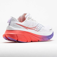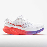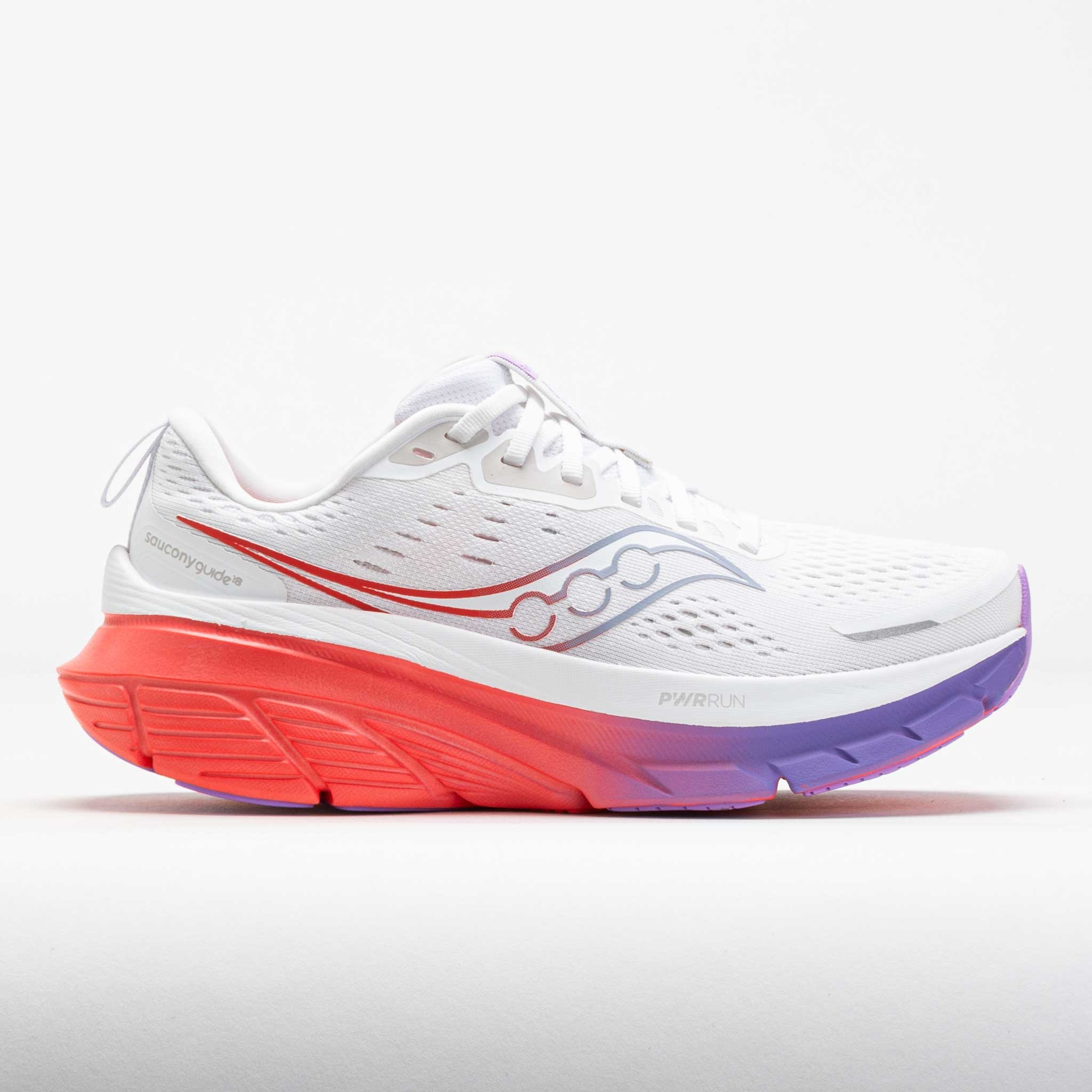Max cushioning meets reliable protection in the Saucony Guide 18! This stability running shoe blends smooth support with a responsive ride. Enjoy a secure step-in feel from the memory foam collar and engineered mesh upper. Soft and springy PWRRUN foam combines with Center Path Technology to keep you on the right track. If you want a smooth ride from start to finish, choose the Saucony Guide 18! What's New? - Engineered mesh upper improves the fit, while a memory foam collar adds a secure and comfortable feel. Who's it for? - Runners who slightly overpronate and need lightweight support for their stride. - Runners with a diverse workout routine that includes various distances, speeds, and intervals. - Anyone with a wide foot wants a shoe that can accommodate without sacrificing comfort. Shoe Technology Upper: Breathable and supportive engineered mesh upper offers versatile wearability. Memory foam collar provides a secure step-in feel. Midsole: Soft and responsive PWRRUN foam guides smooth and comfortable miles. CenterPath technology features a wider platform and higher sidewalls for stable landings. Outsole: XT-900 carbon rubber outsole delivers durable traction in high-wear areas. Podular outsole design improves flexibility for smoother transitions. Wide platform provides an inherently stable ride. PRODUCT SPECIFICATIONS - Support: support - Color: White/Crocus - Forefoot Height: 29mm - Heel Height: 35mm - Offset: 6mm - Weight: 8.6 Ounces - Item #: 043085 - Style #: S10998-241 US sales only.
