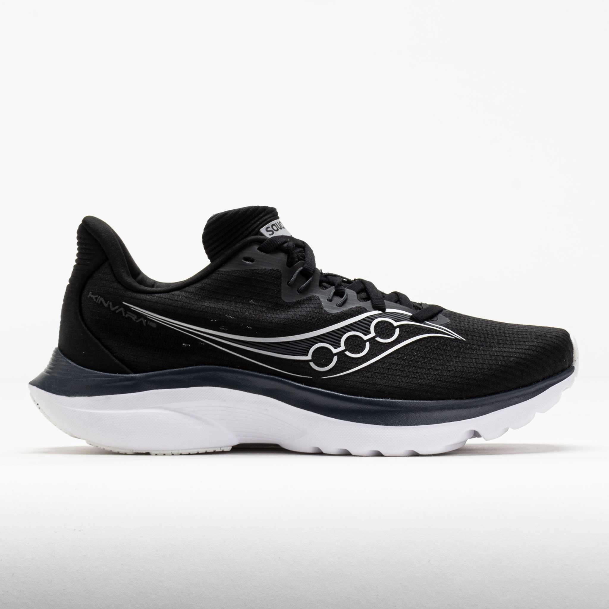 Push the pace in the Saucony Kinvara 16! This ultralight trainer provides a fast and flexible ride. Enjoy distraction-free comfort while you push the pace in the breathable mesh upper. The light and responsive PWRRUN midsole provides more energy return and durability for daily wear. Fast and flexible with a low-profile design, the Saucony Kinvara 16 unleashes your natural speed! What's New? - Upgraded blend of PWRRUN provides more energy return and durability for daily wear. - New geometry features lower sidewalls and a straighter medial midfoot, providing smooth transitions as you pick up the pace. Who's it for? - Competitive runners looking for a fast shoe to beat previous records and break personal barriers. - Neutral runners searching for a lightweight, responsive shoe to wear during tempo training and long distances. - Runners who want a light and budget-friendly option for race day. Shoe Technology Upper: Breathable and lightweight mesh upper with a 3D molded heel cup for a secure, comfortable fit. Midsole: PWRRUN foam midsole provides a smooth and responsive ride. SRS sockliner provides step-in comfort. Outsole: XT-900 carbon rubber in the heel and toe provides durable traction. PRODUCT SPECIFICATIONS - Support: neutral - Color: Black/White - Forefoot Height: 25mm - Heel Height: 29mm - Offset: 4mm - Weight: 7.3 Ounces - Item #: 043030 - Style #: S21020-200