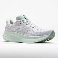 Feel good from mile one to mile done in the Saucony Ride 18! This neutral daily trainer celebrates two decades of comfort and durability with the most responsive Ride yet. Enjoy a light and energetic feel from the full-length PWRRUN+ foam midsole. Stay cool while you cruise in the breathable engineered mesh upper. From daily runs to gym sessions, the Saucony Ride 18 provides versatility for any activity! What's New? - Increased XT-900 rubber on the outsole improves durability for daily miles. - Removed overlays in the upper reduce weight while creating a sleek look. Who's it for? - Neutral runners who want a soft and reliable shoe to wear during daily training. - Beginners looking for an entry-level running shoe with responsive cushioning and durability. Shoe Technology Upper: Engineered mesh upper improves stretch and breathability for a comfortable fit. Plush heel collar provides step-in comfort. Midsole: PWRRUN+ foam perfectly blends lightweight comfort and reliable durability. Outsole: Increased XT-900 rubber coverage provides more protection and durability. Enhanced rubber at the front and added flex grooves ensure smooth transitions. PRODUCT SPECIFICATIONS - Support: neutral - Color: Fog/Mist - Forefoot Height: 27mm - Heel Height: 35mm - Offset: 8mm - Weight: 8.0 Ounces - Item #: 043067 - Style #: S11000-221 US sales only.