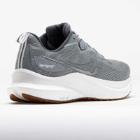 Feel effortless at fast speeds in the Saucony Tempus 2! This lightweight stability shoe combines a sleek geometry with premium midsole foams for a bouncy ride. Enjoy a secure and comfortable fit in the engineered mesh upper. The PWRRUN PB foam midsole provides responsive energy return, while the stable PWRRUN frame guides smooth transitions.If you want max support with a super-fueled ride, try the Saucony Tempus 2! What's New? - Improved engineered mesh upper offers a secure midfoot fit. Who's it for? - Runners with mild to severe overpronation who need a supportive shoe for daily training. - Long distance lovers who need a shoe with ample cushioning to withstand many miles. Shoe Technology Upper: Engineered mesh upper offers a secure midfoot hold. Midsole: PWRRUN PB superfoam provides efficient and energetic strides. PWRRUN support frame guides your foot forward smoothly. Asymmetrical design provides medial support at high speeds. Outsole: XT-900 carbon rubber provides reliable traction and durability. PRODUCT SPECIFICATIONS - Support: support - Color: Fossil/White - Forefoot Height: 25mm - Heel Height: 33mm - Offset: 8mm - Weight: 9.4 Ounces - Item #: 043087 - Style #: S20973-203 US sales only.