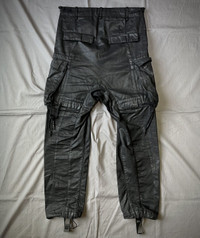 A pair of waxed denim cargo pants from 11 by Boris Bidjan Saberi. Made with a heavyweight cotton with concealed drawstrings and a belt on both sides of the hips these pants are able to fit sizes 29-31. The pants are still in great condition, only fading on the buttons is visible. Feel free to form your own judgement based on the pictures provided! The wash tag/price tag has been removed. All sales are shipped within 24 hours. All sales are final. Offers are welcomed. Feel free to reach out for any inquiries. - @HoldenPieces