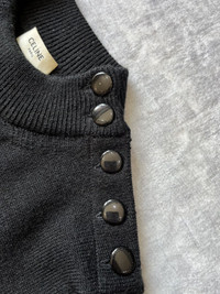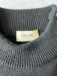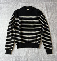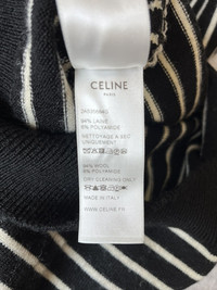 A striped sweater from Celine by the famous and controversial creative director Hedi Slimane from the Fall/Winter 2019 collection. This comfortable and stretchy wool sweater features button details on the left shoulder with the text 'Celine Paris' on each button. This unisex piece is perfect for its quality and for its quiet luxury subtleness. Featured on the runway show in Paris 2019. All sales are shipped within 24 hours. All sales are final. Offers are welcomed. Feel free to reach out for any inquiries. - @HoldenPieces