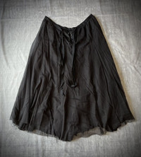 A midi skirt from Maison Margiela from the SS14 collection. This piece features a layered design with the outer layer crafted using tulle fabric and the inner layer crafted using rayon fabric. The front of the skirt features drawstrings. Last two images shows how the skirt fits from the side. Note: Measurement was taken with the garment laid flat. Item can fit true to size using the drawstrings. All sales are shipped within 24 hours. All sales are final. Offers are welcomed. Feel free to reach out for any inquiries. - @HoldenPieces