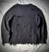 An oversized grunge sweater from TAKAHIROMIYASHITA TheSoloist. This sweater is from the autumn/fall 2016 collection and features heavy distressing across the entire sweater and distressing on the hem. The sweater is constructed using a heavy weight cotton material which provides some warmth despite all the holes. All sales are shipped within 24 hours. All sales are final. Price is final for this item. Feel free to reach out for any inquiries. - @HoldenPieces