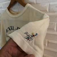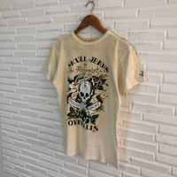Nice design. Size estimate small ( S ). No refund !! Condition is used. Don't expect it's look like a new. Please read all the description carefully before buying. If you have any questions feel free to ask. Light spotting and wear on tee please see pictures for details. See carefully the pictures details. No refund !! Please do not hesitate to contact me if You have any inquiries. It's my great pleasure to have conversation with customers. GREAT BUY !!! Thanks for looking. Ref Item: JS35 Bob
