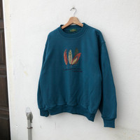 Nice design. Size estimate medium ( M ). No refund !! Condition is gently used. Don't expect it's look like a new. Please read all the description carefully before buying. If you have any questions feel free to ask. Light spotting and wear on sweatshirt please see pictures for details. See carefully the pictures details. No refund !! Please do not hesitate to contact me if You have any inquiries. It's my great pleasure to have conversation with customers. GREAT BUY !!! Thanks for looking. Ref Item: JS27