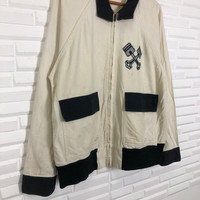 Nice design. Size estimate L ( L ). No refund !! Condition is used. Don't expect it's look like a new. Please read all the description carefully before buying. If you have any questions feel free to ask. Light spotting and wear on jacket please see pictures for details. See carefully the pictures details. No refund !! Manual measurement- From collar to end of the sleeve: 30 inches Please do not hesitate to contact me if You have any inquiries. It's my great pleasure to have conversation with customers. GREAT BUY !!! Thanks for looking. Ref Item: JS24