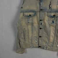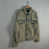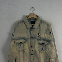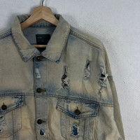 Zara - VINTAGE ZARA MAN DISTRESSED DENIM JACKET ACID WASH DESIGN