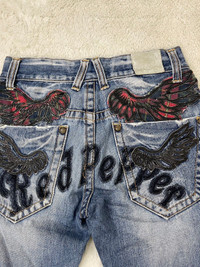 Hello! Please read the following description before purchase the item. Brand : Red Pepper Made in : Japan Material : Cotton Color : Blue Condition : GOOD distressed Size: 30 Measurements Waist : 30 Length: 40 (outseam)" Rise: Outseam: 31” Leg Open : 8” All measurements are taken with the garment flat on the ground. (Please read make sure the measurement are fit with you before purchase) Condition: Pre loved item in good looking. Payment: Accept PAY-PAL only Shipping: 1) >80usd Item will be shipped via DHL Express ( arrive in 3-7 days) after the payment completed. 2) <75usd Item will be shipped via Standard shipping (arrive in <21 days) after payment completed *Please leave your PHONE NUMBER for shipping! Refund: I am NOT accepting any refund nor cancellation after payment completed. Please don't expect the item to be like new or in the best condition. Thanks for viewing