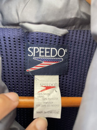 Hello! This is a Jacket Pre-loved used , Please read the following description: Brand : Speedo Made in : Hong Kong Material : Polyester Color : Blue/Grey Condition : GOOD but Vintage Printing defect Tag reads: L Measurements Pit-Pit : 23” Length: 28” Shoulder : 20” Sleeve/24” All measurements are taken with the garment flat on the ground. (Please read make sure the measurement are fit with you before purchase) Condition: Pre loved item in good looking. Payment: Accept PAY-PAL only Shipping: 1) >180 usd Item will be shipped via DHL Express ( arrive in 3-7 days) after the payment completed. 2) <175usd Item will be shipped via Standard shipping (arrive in <21 days) after payment completed *Please leave your PHONE NUMBER for shipping! Refund: I am NOT accepting any refund nor cancellation after payment completed. Please don't expect the item to be like new or in the best condition. Thanks for viewing