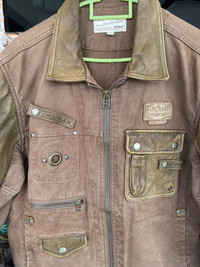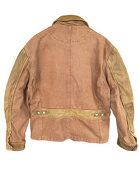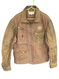 Hello! Please read the following description before purchase the item. This Jacket was designed with Leather + Cotton materials. Look stunning hybrid jacket Brand : Avirex Material : Leather & Cotton Color : Brown Condition : Vintage Look Tag reads: L Measurements Pit-Pit : 21.5" Length: 27” Shoulder : 17” Sleeve:24” All measurements are taken with the garment flat on the ground. (Please read make sure the measurement are fit with you before purchase) Shipping: 1) > Item will be shipped via DHL Express ( arrive in 3-7 days) after the payment completed. or FedEx. *Please leave your PHONE NUMBER for shipping! Refund: I am NOT accepting any refund nor cancellation after payment completed. Please don't expect the item to be like new or in the best condition. Thanks for viewing