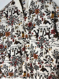 Hello! This a used clothing jacket in good condition please see carefully. Brand : Vintage Art Bomber Made in : Japan Material : Cotton Color : Multicolor Condition : GOOD Tag reads: M Measurements Pit To Pit : 21 Length: 25” Shoulder To Shoulder : 17” Sleeve Long: 24" All measurements are taken with the garment flat on the ground. (Please read make sure the measurement are fit with you before purchase) Condition: Pre loved item in good looking. Payment: Accept PAY-PAL only Shipping: 1) >130 usd Item will be shipped via DHL Express ( arrive in 10 days) after the payment completed. 2) <129 usd Item will be shipped via Standard shipping (arrive in <21 days) after payment completed *Please leave your PHONE NUMBER for shipping! Refund: I am NOT accepting any refund nor cancellation after payment completed. Please don't expect the item to be like new or in the best condition. Thanks for viewing