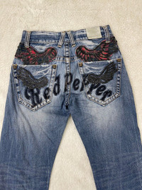 Hello! Please read the following description before purchase the item. Brand : Red Pepper Made in : Japan Material : Cotton Color : Blue Condition : GOOD distressed Size: 30 Measurements Waist : 30 Length: 40 (outseam)" Rise: Outseam: 31” Leg Open : 8” All measurements are taken with the garment flat on the ground. (Please read make sure the measurement are fit with you before purchase) Condition: Pre loved item in good looking. Payment: Accept PAY-PAL only Shipping: 1) >80usd Item will be shipped via DHL Express ( arrive in 3-7 days) after the payment completed. 2) <75usd Item will be shipped via Standard shipping (arrive in <21 days) after payment completed *Please leave your PHONE NUMBER for shipping! Refund: I am NOT accepting any refund nor cancellation after payment completed. Please don't expect the item to be like new or in the best condition. Thanks for viewing