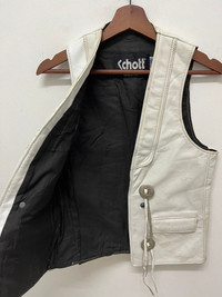 Hello! Please read the following description before purchase the item. Brand : Schott Made in USA Material : Leather Color : White Condition : Used good Tag reads: S Measurements Pit-Pit : 17” Length: 22” Shoulder : 11.3” Sleeveless All measurements are taken with the garment flat on the ground. (Please read make sure the measurement are fit with you before purchase) Condition: Pre loved item in good looking. Payment: Accept PAY-PAL only Shipping: Via FedEx Express 5-10days depend. Extra charge for remote area. *Please leave your PHONE NUMBER for shipping! Refund: I am NOT accepting any refund nor cancellation after payment completed. Please don't expect the item to be like new or in the best condition. Thanks for viewing @GB8
