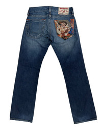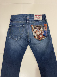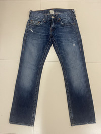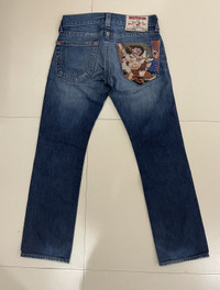 Hello! This is a Jeans Pre-loved used , Please read the following description: Brand : True Religion Made in Usa Material : Cotton Color : Blue Denim Condition : Used nice Tag reads: 34 Measurements Waist : 31-32 Outseam : 39” Inseam : 30” Front Rise:9 Leg Open:7.5” All measurements are taken with the garment flat on the ground. (Please read make sure the measurement are fit with you before purchase) Condition: Pre loved item in good looking. Payment: Accept PAY-PAL only Shipping: 1) >180 usd Item will be shipped via DHL Express ( arrive in 3-7 days) after the payment completed. 2) <175usd Item will be shipped via Standard shipping (arrive in <21 days) after payment completed *Please leave your PHONE NUMBER for shipping! Refund: I am NOT accepting any refund nor cancellation after payment completed. Please don't expect the item to be like new or in the best condition. Thanks for viewing
