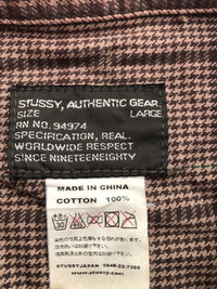 Hello! Please read the following description before purchase the item. Brand : StUssy Made in : China Material : Cotton Color : Brown Tartan Condition : GOOD / faded on left sleeve Tag reads: L Measurements Pit To Pit : 22” Length: 27” Shoulder To Shoulder : 18” Sleeve Long: 23" All measurements are taken with the garment flat on the ground. (Please read make sure the measurement are fit with you before purchase) Condition: Pre loved item in good looking but faded on the left elbow. Payment: Accept PAY-PAL only Shipping: 1) >110 usd Item will be shipped via DHL Express ( arrive in 3-7 days) after the payment completed. 2) <100 usd Item will be shipped via Standard shipping (arrive in <21 days) after payment completed *Please leave your PHONE NUMBER for shipping! Refund: I am NOT accepting any refund nor cancellation after payment completed. Please don't expect the item to be like new or in the best condition. Thanks for viewing